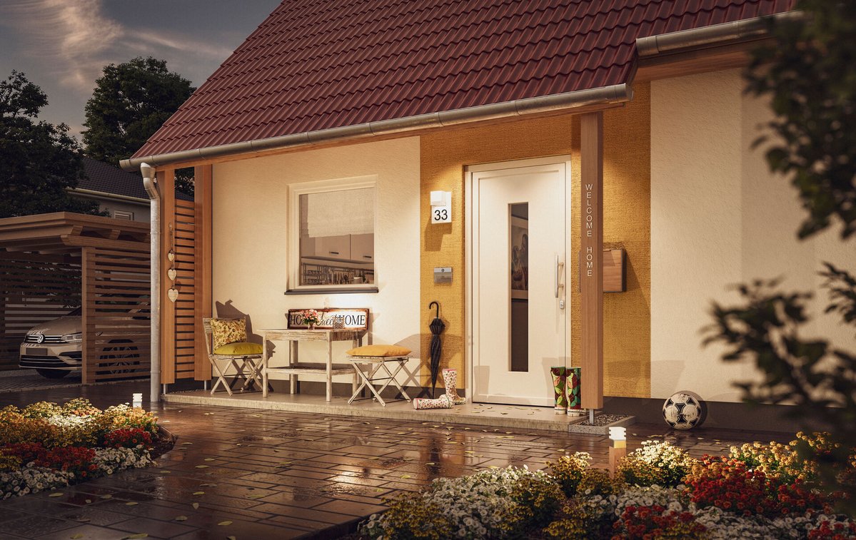 Das "Flair 110" ist ein lebendiges Zuhause, das mit 110 Quadratmetern voller Licht und Wärme strahlt. Seine bodentiefen Fenster bringen natürliche Helligkeit in jeden Raum, schaffend eine einladende Atmosphäre. Die fließende Verbindung von Wohn- und Essbereich neben der herzlichen Küche macht das Haus zum Mittelpunkt des Familienlebens. Mit einem optionalen Zusatzzimmer im Erdgeschoss und großzügigen Schlaf-, Kinder- und Gästezimmern im Obergeschoss bietet es reichlich Platz für alle Lebenslagen. "Flair 110" - ein Ort, der Geborgenheit und unvergessliche Momente verspricht.
