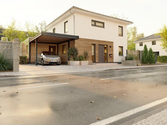 - Vorrüstung E-Auto: Wir denken nicht nur mit, sondern setzen auch direkt um. Alle unsere Häuser haben eine E-Auto Vorrüstung. Damit sind sie mobil, flexibel und bleiben beweglich.
