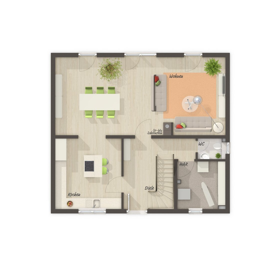- Fußbodenheizung: Warme Füße? Auch die Fußbodenheizung ist inklusive. Sie steigert nicht nur den Wert Ihres Hauses, sondern sorgt ganz nebenbei noch für echtes Wohngefühl.