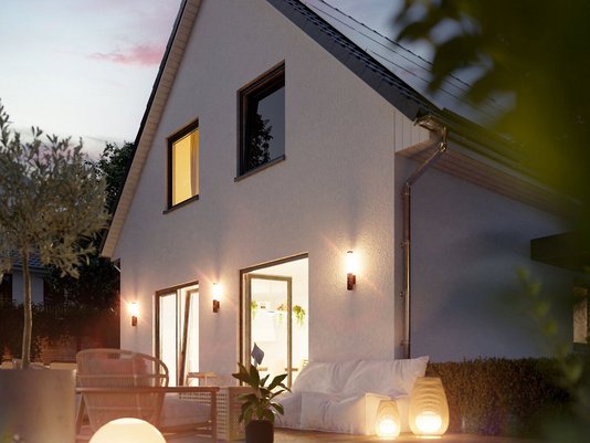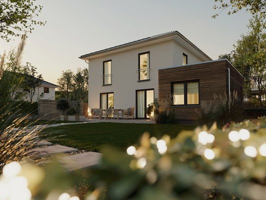 Ehepaar Klein realisierte eine Stadtvilla als Effizienzhaus 40 Plus mit Unterstützung aus der Bundesförderung effiziente Gebäude (BEG). Insgesamt erhielten sie eine Kreditsumme von 150.000 Euro zu einem Zinssatz von 0,5 % und zusätzlich einen Tilgungszuschuss von 15 %. In Summe betrug die unmittelbare Einsparung rund 22.500 Euro. Aufgrund der zusätzlichen Photovoltaik-Anlage sparen die Kleins zudem jährlich rund 1.500 Euro an Stromkosten.
