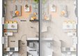 Eine Doppelhaushälfte bietet Ihnen die Vorteile eines normalen Einfamilienhauses, benötigt aber weniger Grundstücksfläche. Die effiziente Raumaufteilung des Doppelhaus Mainz tut ihr Übriges dazu: Im Erdgeschoss erstreckt sich das geräumige Wohnzimmer mit genügend Platz für Entspannung und Familienaktivitäten. Mit einem schönen Esstisch machen Sie das Wohnzimmer zum zentralen Treffpunkt mit Ihren Lieben. Die bodentiefen Fenster verwöhnen Sie mit angenehmen Tageslicht und einem Blick ins Grüne.