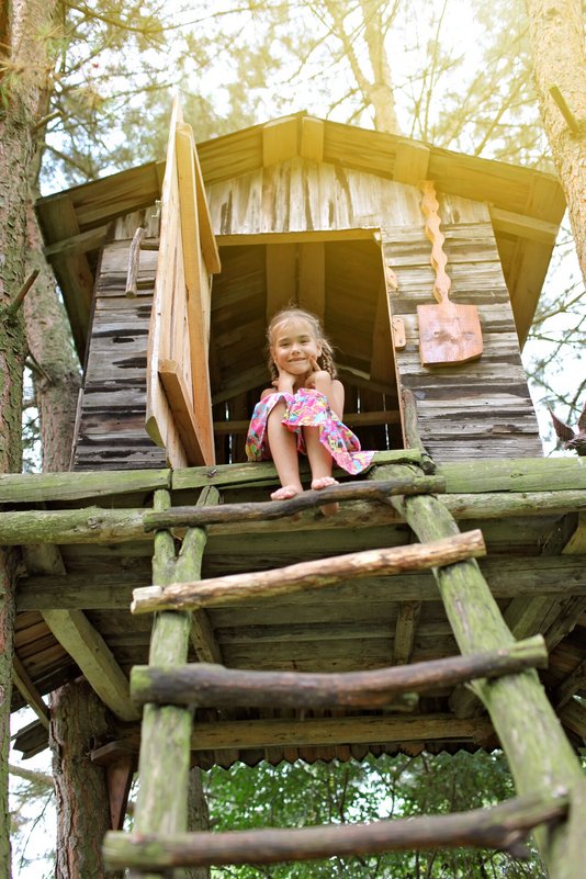 Wie hoch ein Baumhaus für Kinder über dem Boden schwebt, hängt von dem Alter und der Kletterfreude der Kinder ab. Eine grobe Regel zur Höhe gibt es: Je älter die Kinder sind, desto höher darf man ihr Baumhaus bauen. Während im Kindergartenalter die Hüfthöhe von Erwachsenen schon fast als schwindelerregend wahrgenommen wird, sind bei Grundschulkindern 1,5 bis 2 Meter als Höhe des Baumhauses in Ordnung.