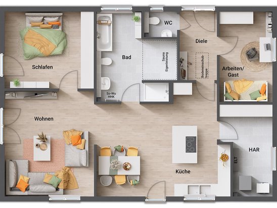 - maßgeschneiderte Grundrisse, z. B. für Bungalows, Stadtvillen & mehr