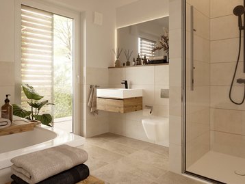 Auch beim Neubau sind viele Maßnahmen aus dem Programm 159 förderfähig – z. B. im Badezimmer, bei den Eingängen oder in den Außenanlagen.