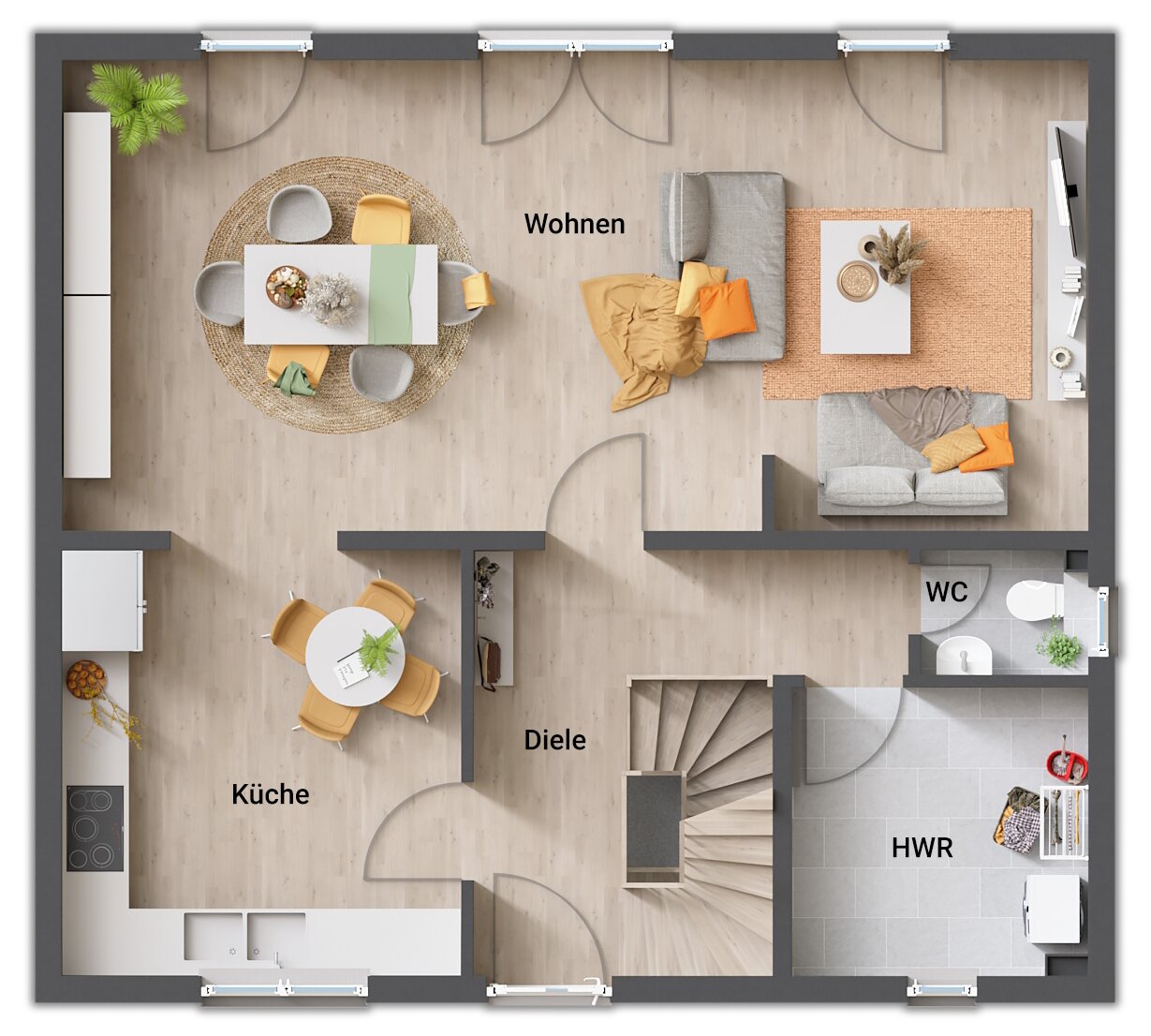 - Fußbodenheizung: Warme Füße? Auch die Fußbodenheizung ist inklusive. Sie steigert nicht nur den Wert Ihres Hauses, sondern sorgt ganz nebenbei noch für echtes Wohngefühl.
