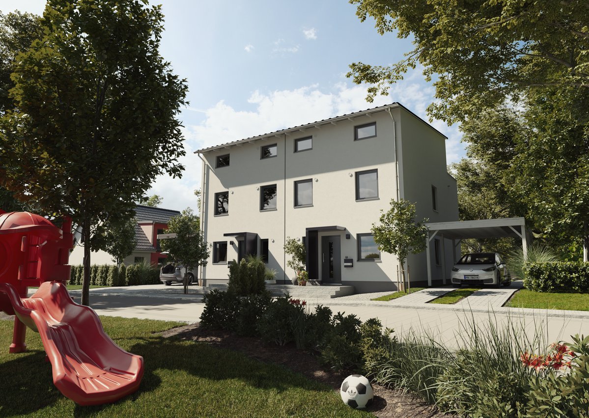 In unserem Ratgeber „In 10 Schritten zu Ihrem Grundstück“ können Sie Tipps und Tricks für Ihre Grundstückssuche nachlesen. Wenn Sie ein passendes Baugrundstück für Ihr Doppelhaus gefunden haben, können Sie es mit Familienangehörigen, Freunden oder anderen Bauwilligen bebauen. Das Katasteramt der jeweiligen Stadt oder Gemeinde sagt Ihnen, ob das Grundstück vor dem Hausbau geteilt werden kann. So hat jede Bauherrenfamilie Ihren Grund und Boden und spart Kosten beim Grundstückskauf sowie bei der Baustelleneinrichtung.