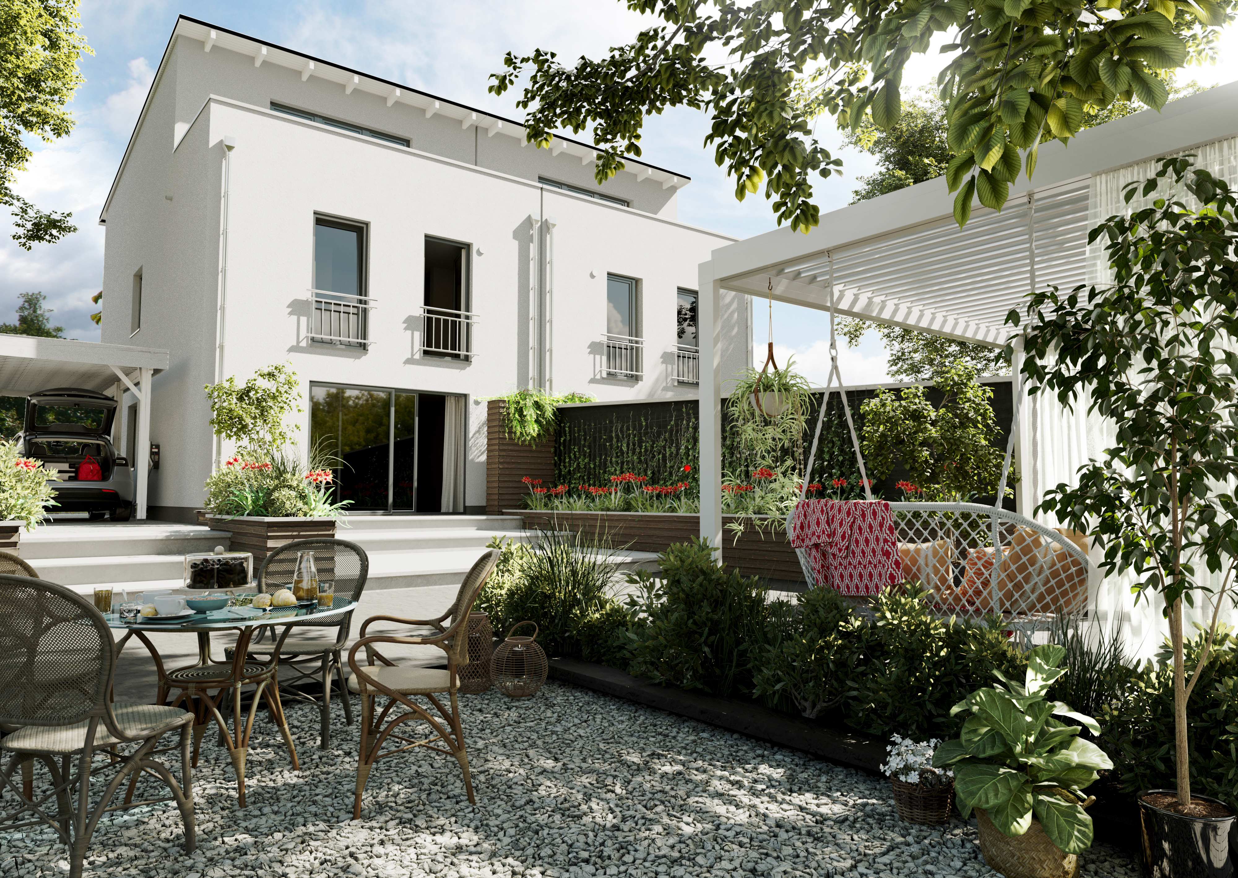 Anders als bei einem Bungalow ist die Grund- und Wohnfläche bei einem Doppelhaus nicht gleichzusetzen. Ein cleverer und flexibler Grundriss schenkt Ihnen im Doppelhaus ein großzügiges Raumgefühl. Aber keine Sorge, die Doppelhaushälften sind klar voneinander getrennte Wohnbereiche, die durch eine gemeinsame Hauswand verbunden sind.